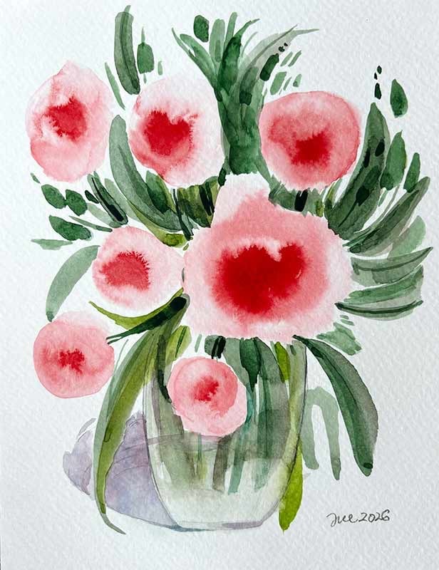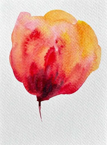 The focus is on letting colours meet on paper, watching what happens, and allowing the painting to unfold at its own pace.